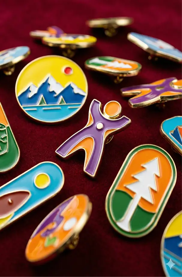 Premium metal pins, Custom enamel filling, Perfect for corporate gifts, events, and collectibles.